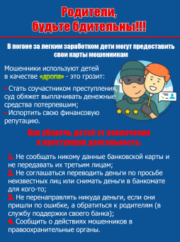 Участились случаи продажи детьми своих банковских карт неустановленным лицам, которые впоследствии используют их в незаконных финансовых схемах, в том числе связанных с мошенничеством, продажей наркотиков, иными преступлениями